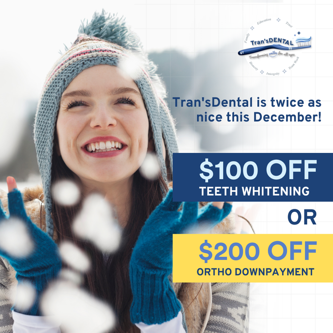 Shine with confidence this holiday season and let your smile steal the show! Take advantage of our exclusive holiday offers to brighten your smile. Enjoy $100 off teeth whitening services, whether you choose our Zoom or take-home.